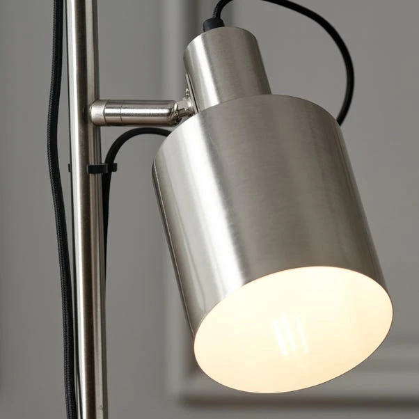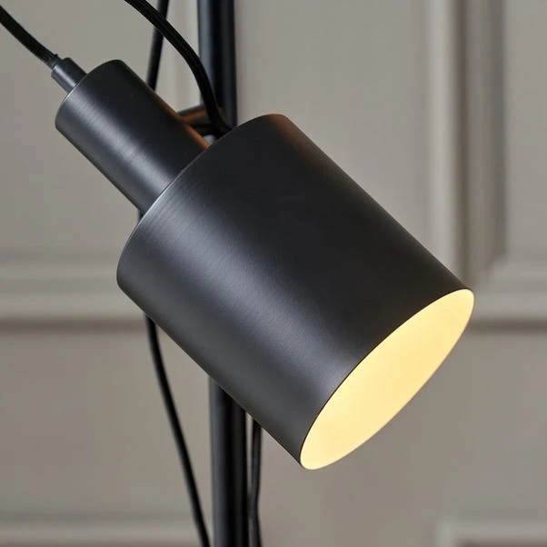 The Aaron Task Floor Lamp blends contemporary style with practicality, featuring moveable heads for directional lighting. Available in a choice of colour finishes with a black fabric cable detailing, this floor lamp exudes an edgy, industrial look with a refined touch.