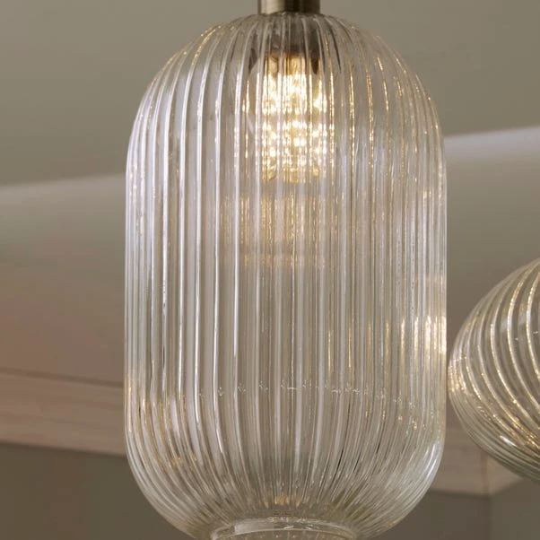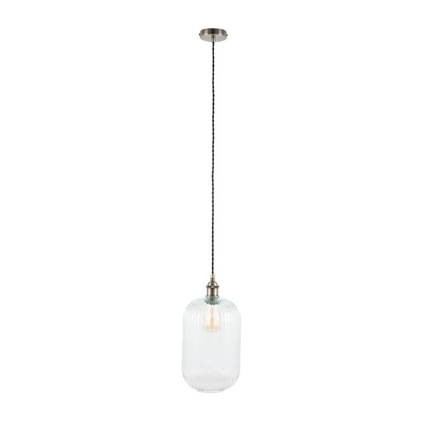 Bring this statement light fitting to your home for an atmospheric illumination with a clear yet decorative glass pendant. Featuring a spectacular tall shape, the clear ribbed design contrasted with satin brass metalwork offers a sophisticated yet modern look. The adjustable height allows this fitting to suit your space, however long or short of a drop you wish to display with.