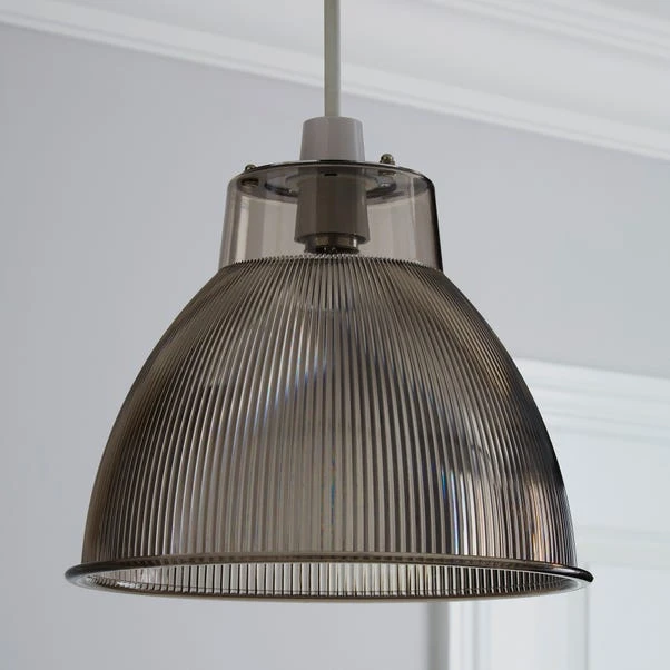 The Alanya east fit pendant boasts a dome shape shade, with chrome detail and ribbed texture. Made from acrylic in a choice of clear and smoked options, this will bring a retro look to your home. Easy Fit pendants are ideal for a quick style change without needing an electrician. Simply assemble on to your existing ceiling fitting, and you’re good to go within minutes! Don’t forget to choose the correct bulb for your ceiling fitting.