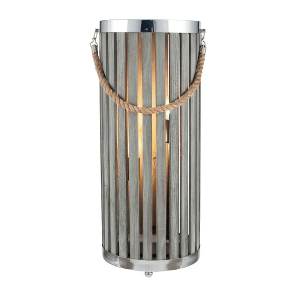 Bring a touch of the coast into your home with this Austell floor lamp. It has been made with a wooden slatted design that helps to diffuse light throughout your room of choice. The rope handle and chrome edging helps to give this floor lamp the perfect finishing touch.