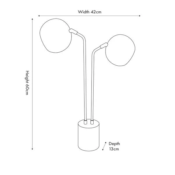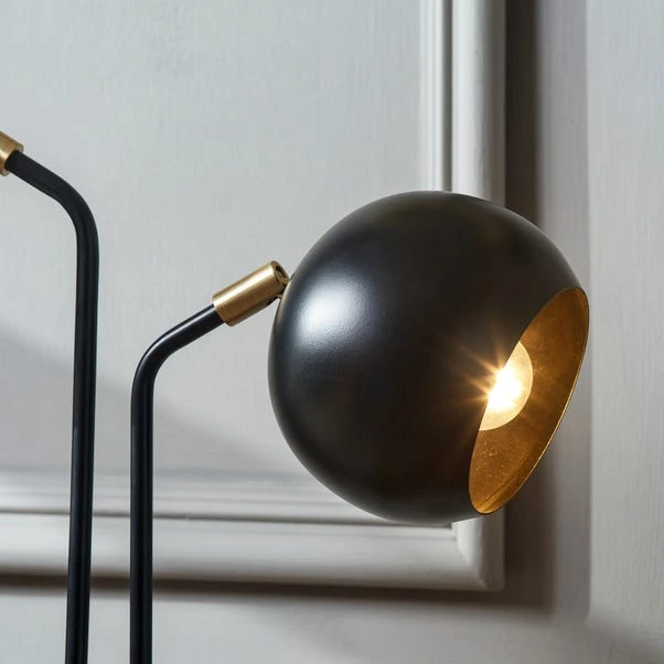 The Bailey Black 2 Head Table Lamp offers both style and functionality with adjustable heads for customisable lighting. Finished in matt black with brass detailing, this lamp creates a striking silhouette in any room.