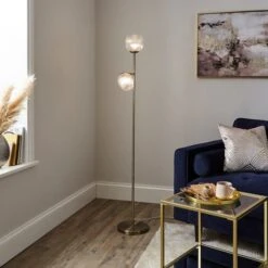 Experience the perfect blend of style and functionality with the Cassia Pressed Glass Mother and Child Adjustable Floor Lamp. The cut glass design adds a touch of glamour, and the adjustable smaller head allows you to focus the light for reading or creating a lovely ambience.