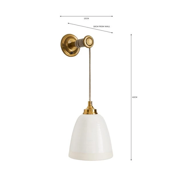 Introducing the Churchgate Harby Ceramic Easy Fit Plug In Wall Light, designed with a stunning White ceramic glazed head, finished in an antique gold metal and complete with a white twisted cable. Perfect for adding a modern touch to your home. Matching family items to help coordinate your décor.