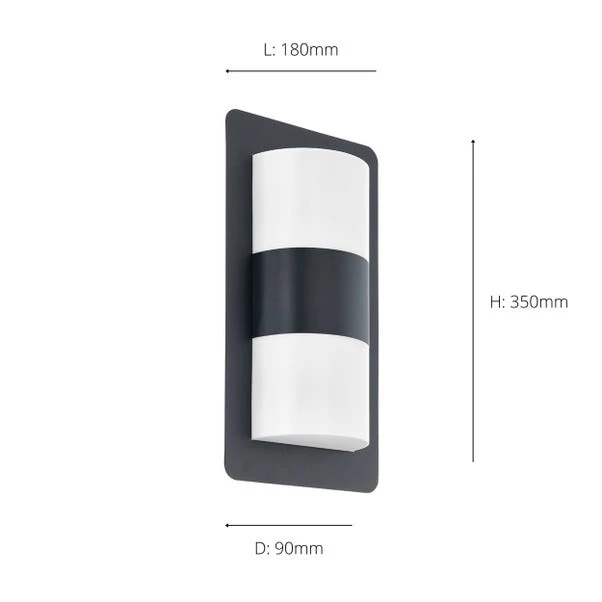 EGLO’s Cistierna wall light brings its unique design and dual light sources to your garden to create a stunning visual effect that’s sure to impress. Its sleek and contemporary style makes it the perfect choice for outdoor lighting with its curved design, anthracite finish, and rounded white plastic diffuser, bringing a modern touch to any garden or patio. Crafted with two light sources that emit light both upwards and downwards, you can create a warm and inviting ambience that’s perfect for outdoor entertaining.