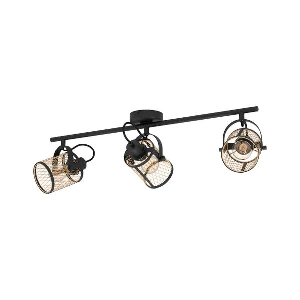 Add a stunning piece to your home with EGLO’s newest must-have. Crafted with care, it features three adjustable metal lampshades made from fine expanded metal mesh in brushed brass, elegantly paired with a sleek black metal mount.