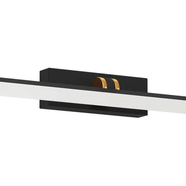 Meet the EGLO Verdello LED Mirror Ceiling Light, which features a modern design with a plastic body in a black finish with small brass accents. For more flexibility, the profile can be swivelled up and down.