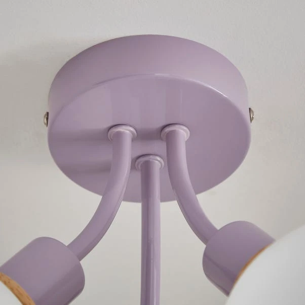 A fun, modern design with three opal white glass shades and a matt-coated metal base. This flush ceiling light is available in multiple colourways, perfect for adding a contemporary touch to any room.