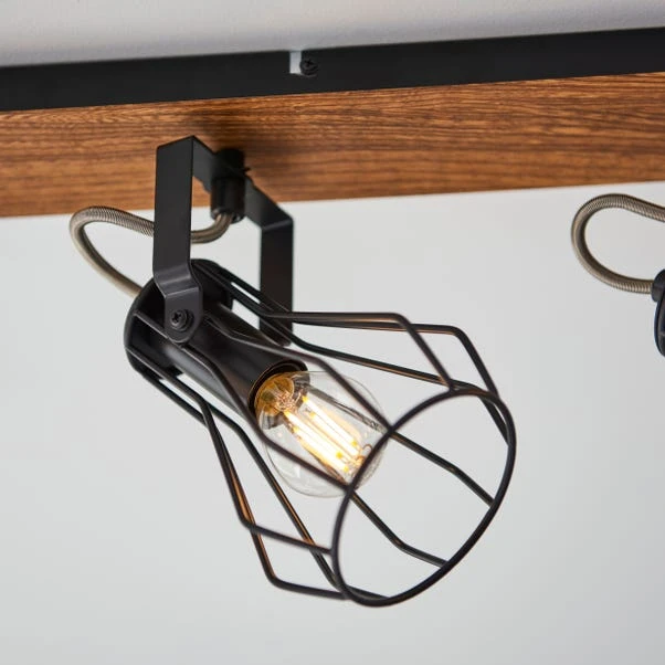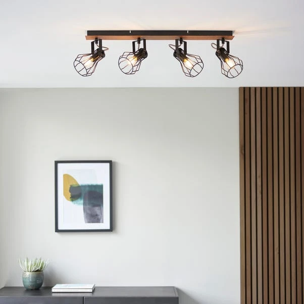 Brighten up your home with the stunning Fulton 4 Light Spotlight Bar. This modern contemporary inspired spotlight bar would suit a range of interiors. It features a dark wood effect bar base with four fully adjustable, matt black paint finish heads for a contrasting look. This stunning spotlight is dimmable compatible and perfect for adding a contemporary touch to your home, with matching family items available to help coordinate your home.