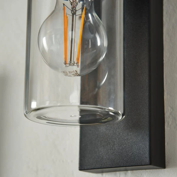 This fixture is designed to enhance both indoor and outdoor spaces, providing a cohesive lighting experience throughout your home. The matte black finish with a dark wood effect fitting exudes modern sophistication, while the clear glass shade adds a touch of elegance. Coordinate your lighting style seamlessly with matching family items, available to purchase separately.