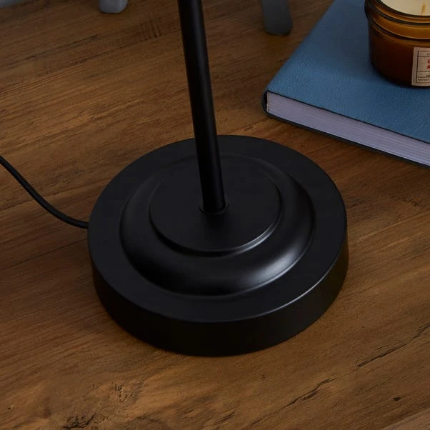 Crafted with a sleek black painted finish, this contemporary desk lamp is designed with an adjustable spotlight which tilts in the direction you want. A simplistic design to suit any interior.