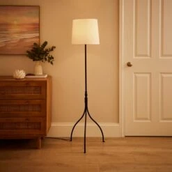Beautifully crafted, the Hotel Finley Tripod Floor Lamp features a clear acrylic base tripod design, metal detailing and a stunning white fabric shade. A perfect statement lamp to inject a glamorous and luxurious feel to your home interior, this floor lamp will complement an array of home decors. Coordinate your home with matching family items, this piece is available in Gold and Silver.