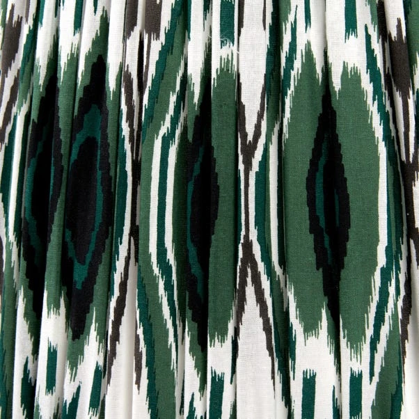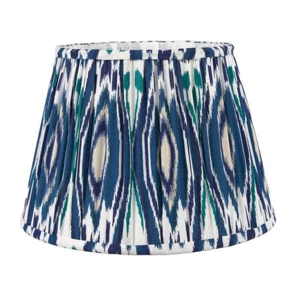 The Izara Ikat Patterned Gathered Tapered Shade showcases a stunning Ikat pattern in vibrant colours, adding a bold statement to your lamp. Crafted from cotton and available in various sizes, it’s a show-stopping addition to any room.