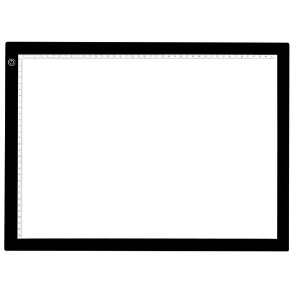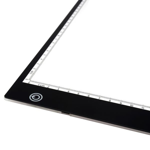 The light box is 471 x 349 x 7mm and the total lighting area is 430 x 310mm. The measuring guide along the top edge is 42cm long and 30cm down the side. The box has a sleek and lightweight design making it easy to store and travel with. There are printed centimetre measurements down the side and along the top of the box to help with accuracy. Also included are 4 small magnets useful for keeping papers in place.The long-lasting bulbs have 50,000hrs life and produce 2260 lumens of light. The light box includes a dimmer function with 3 settings which helps achieve the perfect light needed. There are 4 non slip pads under the box to keep it firmly in place. The light can be adjusted to 3 different strengths making it perfect for many different uses including drawing, painting, tracing, quilting, pattern creation, pattern alignment and much more.Save on energy by using this LED light box with low energy bulbs. The lamp comes with instructions and EUUK mains plugs. The light box has an A+ energy rating.