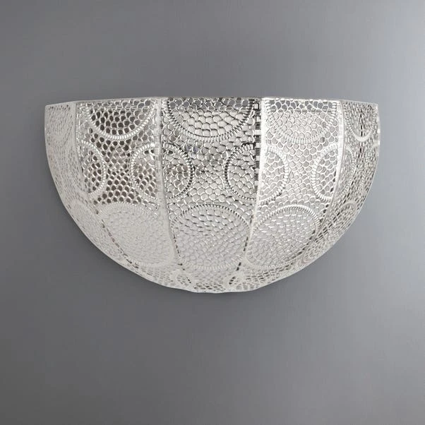 Crafted with a decorative pressed design, this half moon wall light will suit any home.
