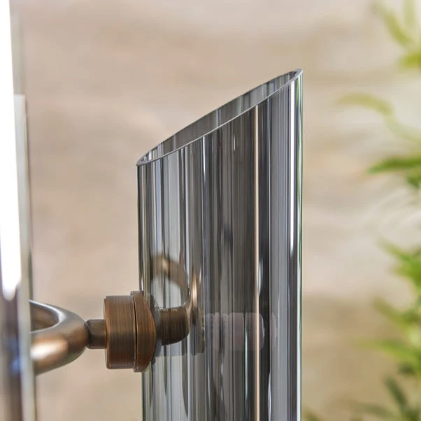 With its smokey lustre glass shades in an antique-brass finish, this ceiling light boasts a statement ringed design and adjustable height capabilities – perfect for creating tailored ambience.