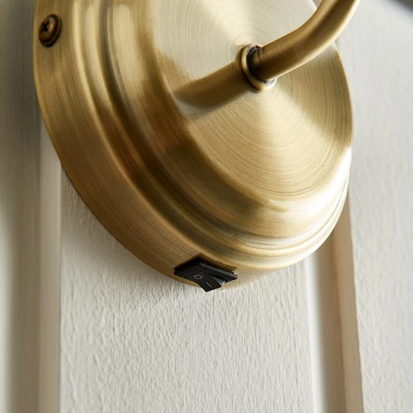 Finished in antique brass and supplied with a rocker switch, this wall light offers an adjustable shade for directional light output. Perfect for illuminating artwork and wall features.