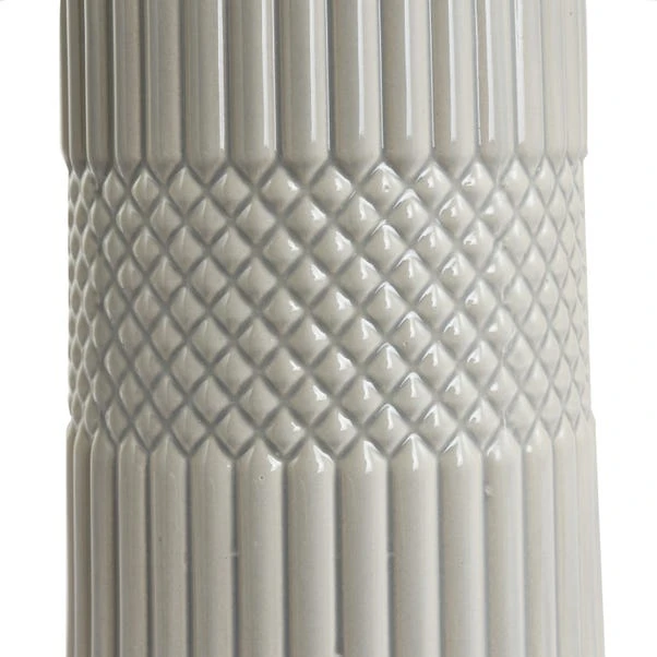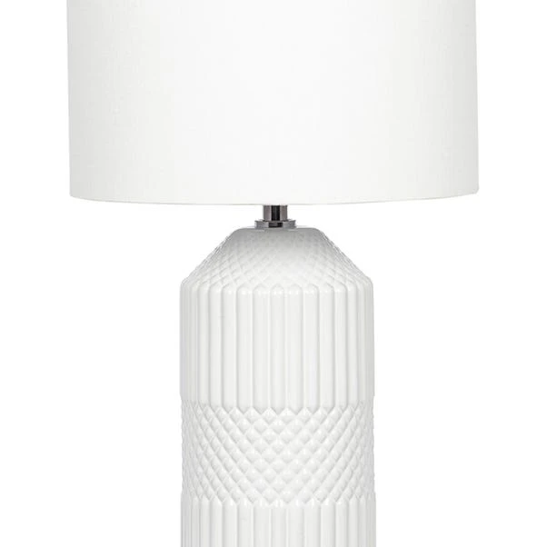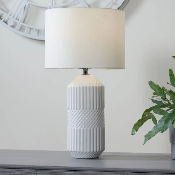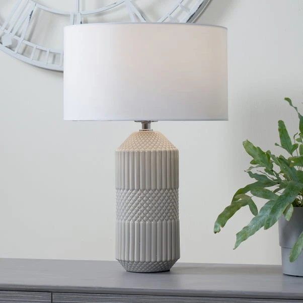 With a tall design, this Meribel table lamp is sure to have your friends asking: “Where did you get that lamp?”! Made with a geo textured ceramic lamp base in a choice of colour options, it is sure to suit your home decor style.