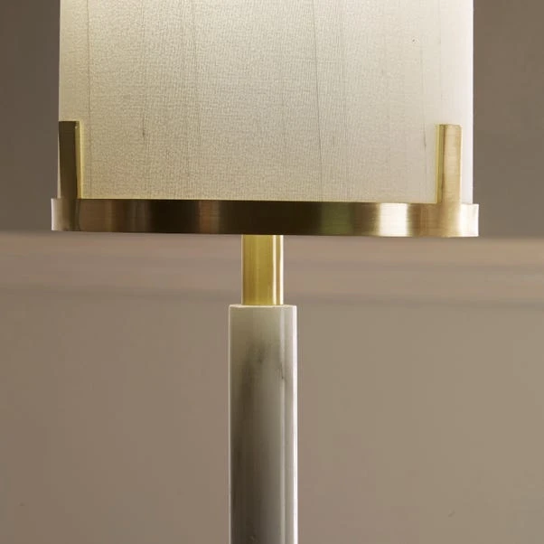 Pop this in the middle of your table to decorate and illuminate your room. The modern table lamp has a marble effect base with a choice of gold or silver detailing.