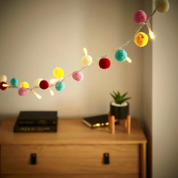 Bursting with lively hues and playful pom-poms, these lights bring a carnival-like atmosphere to any room. Ideal for adding a pop of color to parties, celebrations, or everyday decor, these lights create a cheerful and festive ambiance.