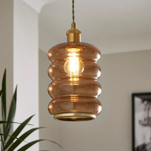 Boasting an eye-catching ribbed and bobbled design, this pendant shade is perfect for giving any room a quick style change. Made from glass, it’s easy to assemble and requires no electrician.