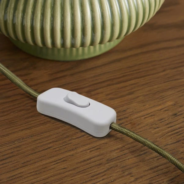 With a retro-inspired style and a unique ribbed design, this table lamp is your home’s newest must-have. Made from ceramic, it is supplied with a convenient in-line switch and is available in multiple colour choices.