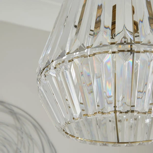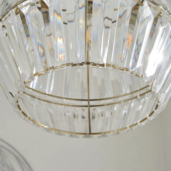Eye-catching in design, the Rhyl Easy Fit Pendant Shade offers a glamorous yet quick style change. Made from metal and acrylic with an alluring crystal-effect shade, this piece is easy to assemble and does not require an electrician.