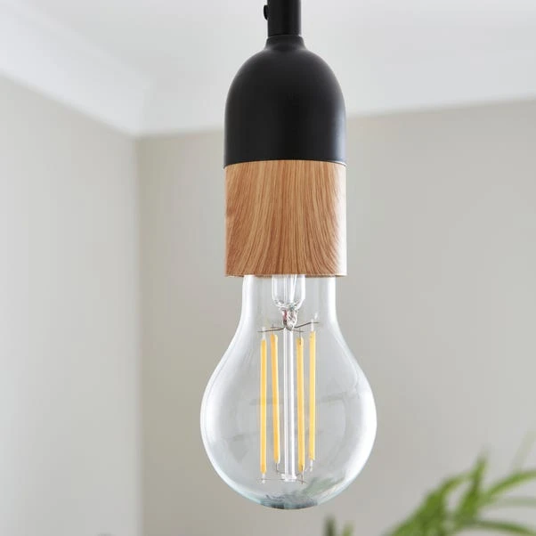 With its three adjustable flex heights, this fitting offers customisable installation to suit your space perfectly. The wood effect detailing adds a touch of natural beauty and warmth to your decor. With its dimmable feature, you can effortlessly create the desired ambiance for any occasion whether you prefer it dimmed or bright. Complete the cohesive look by exploring our range of matching family items, available to purchase separately.