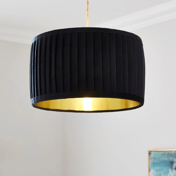 Meet the Sawyer Pleated Velvet Drum Lamp Shade – a smart, and striking, addition to any room. Available in multiple colourways and sizes, this shade’s gold inner creates a warm glow and offers a glamorous finish.
