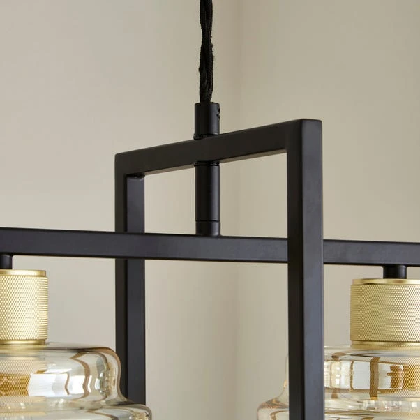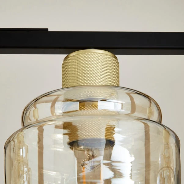 Introducing a light that effortlessly commands attention, whether on or off. This contemporary marvel exudes an industrial charm, transforming your space into a haven of modern sophistication. The cognac glass shade paired with a sleek matte black frame exudes classic luxury, making it a timeless addition to your decor. Elevate your ambience with this versatile fixture, designed to cast a warm and inviting glow that transcends ordinary lighting.