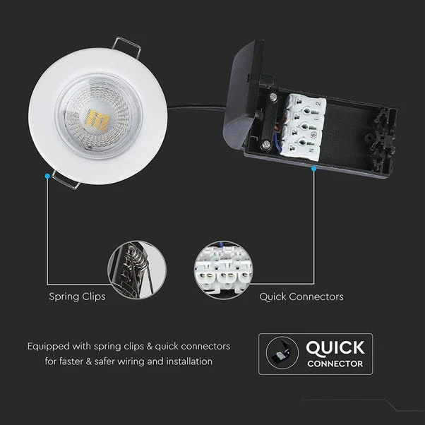 The spotlights come with a durable iron build and an IP65 rating, ensuring they are suitable for both indoor and outdoor use. Installation is quick and easy with the included quick connector and spring clips, and the spotlight is insulation coverable for added versatility.