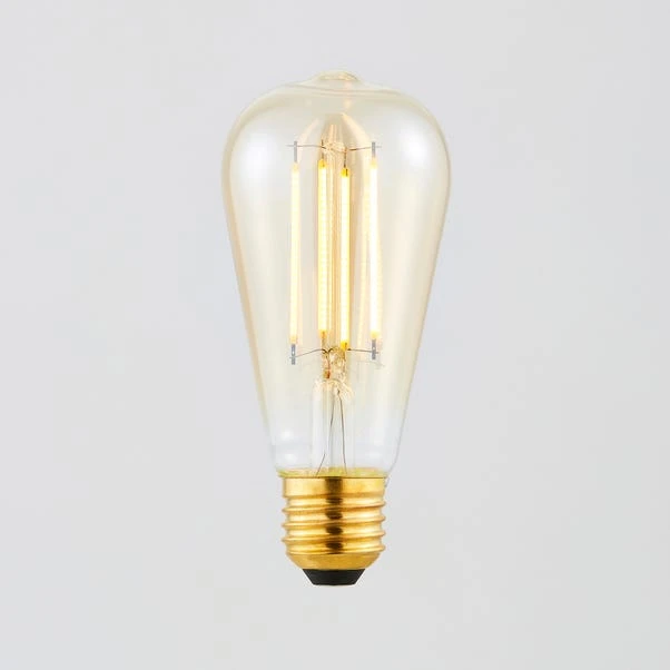 This extra warm white bulb has an amber colourway for a distinctive look that will complement an array of home decors. Not only is it a decorative feature light bulb, but it also has low energy consumption and is dimmable, making it both practical and ideal for mood lighting.