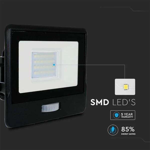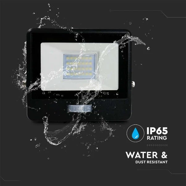 Upgrade your outdoor lighting with the V-TAC 20W LED Floodlight, featuring advanced Samsung LEDs and an integrated PIR sensor for enhanced security and efficiency. This high-quality slim series floodlight provides bright lighting and is designed to detect motion within a 3 to 10-meter radius. Its PIR sensor includes a manual override function, allowing you to switch between sensor mode and constant lighting mode for versatile usage.