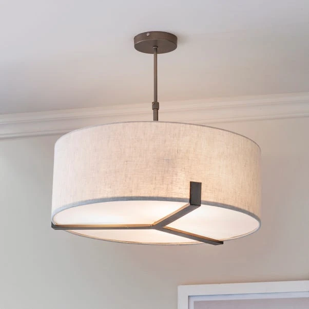 Add a stylish modern look to your room with the Vogue Balaton 3 light pendant ceiling light. It features an impressive brushed bronzed finish and comes complete with a natural linen fabric shade which can suit an array of home interior decors. The dimmer switch compatibility means you can set the perfect lighting to your desires, whether you’re hosting a dinner party or a movie night in. It’s the perfect addition to any home. Why not pair this pendant light with the matching Balaton table lamp for a coordinated look?